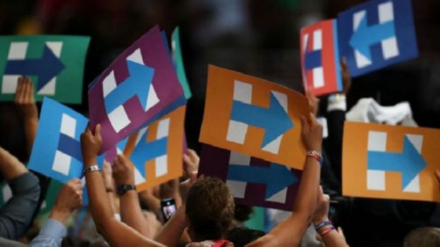 وفي بادرة رمزية على وحدة الحزب الديمقراطي، أخذ بيرني ساندرز المنافس السابق لكلينتون في سباق الترشح للرئاسة مكبر الصوت لوقف القواعد الإجرائية وإعلان كلينتون مرشحة الحزب بالتزكية.