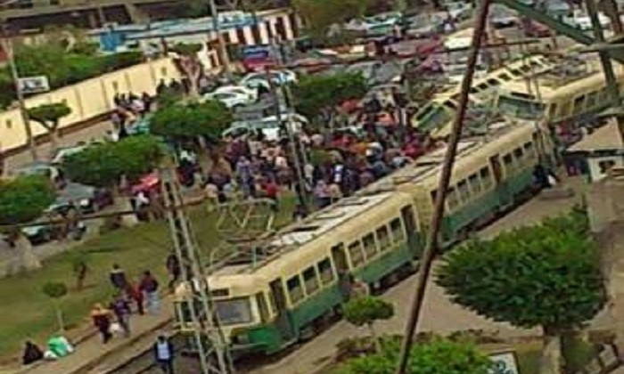 بالصورة تصادم قطارين ترام بمصر الجديدة