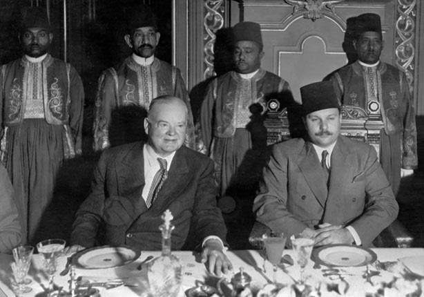 التقى الرئيس الأمريكي الأسبق هيربرت هوفر، الملك فاروق الأول، وقد جاء إلى القاهرة بصفته مبعوثاً من الرئيس الأمريكي هاري ترومان آنذاك وكرئيس لجنة طواريء المجاعة، ملتمساً من جلالته معونة مادية لبعض الدول الأوروبية التي كانت على شفا مجاعة بعد الحرب العالمية الثانية، 27 أبريل 1946.