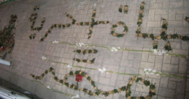 "حياة + حرية = مصر" هذه هى العبارة التى أخذ يعمل عليها رجل مصرى عجوز بالورود فى صمت وهدوء من أمام صور الشهداء بشارع محمد محمود، بعيدا عن ضوضاء ...