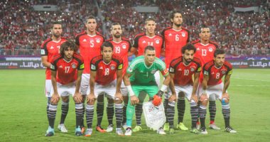 ردد لاعبو منتخب مصر، النشيد الوطنى قبيل انطلاق لقاء الكونغو ...